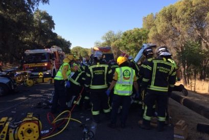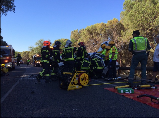 A las 9h. de hoy, martes 12 de julio, ha habido un accidente en la carretera M-605 de El Pardo. Dos turismos han chocado frontalmente en la curva próxima a la gasolinera. Los ocupantes de los vehículos han quedado atrapados y han tenido que ser rescatados por los bomberos. Se trata de un varón de 43 años, que ha resultado leve, y una mujer de 27 años, que está grave. El rescate de la conductora, que varios vecinos confirman que es de El Pardo, ha sido muy complicado y ha durado una hora.