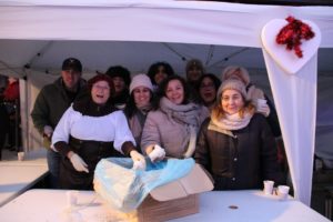 La plaza estaba abarrotada de gente, que pudo despistar al frío con un rico chocolate con bizcocho. Se repartieron casi 1.000 vasos y raciones de dulce.