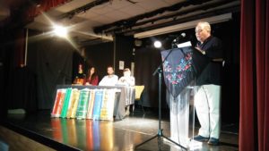 La intervención de Sergio se centró en el poema que escribió su bisabuelo sobre la reina Mª de las Mercedes; ‘Romance de la Princesa Muerta’. Después, Paloma lo recitó cantando.